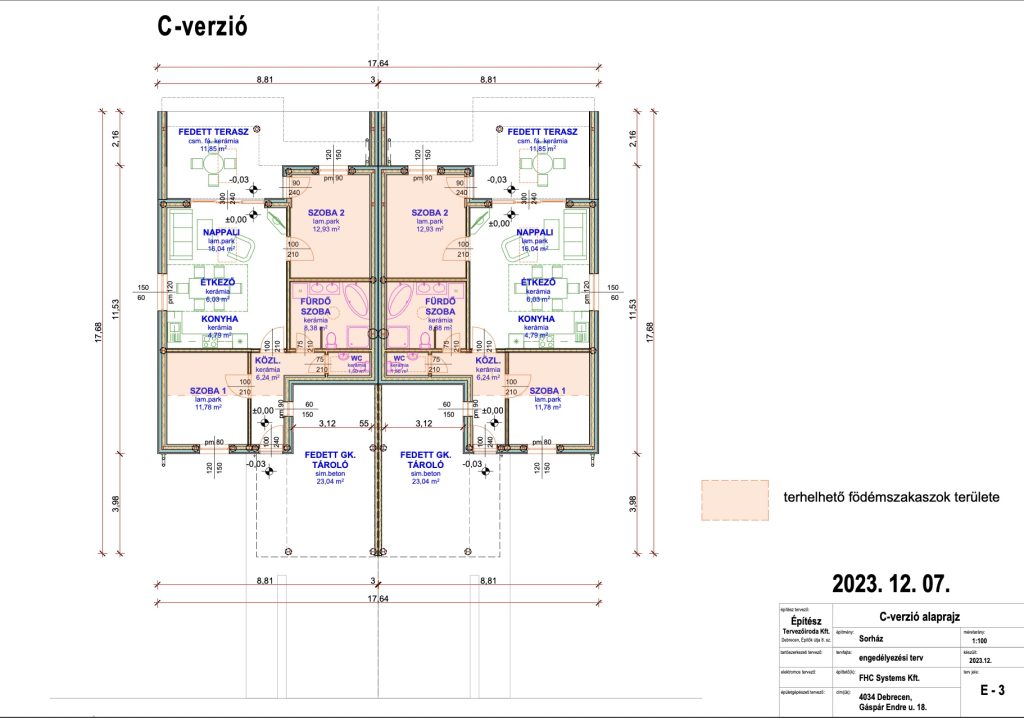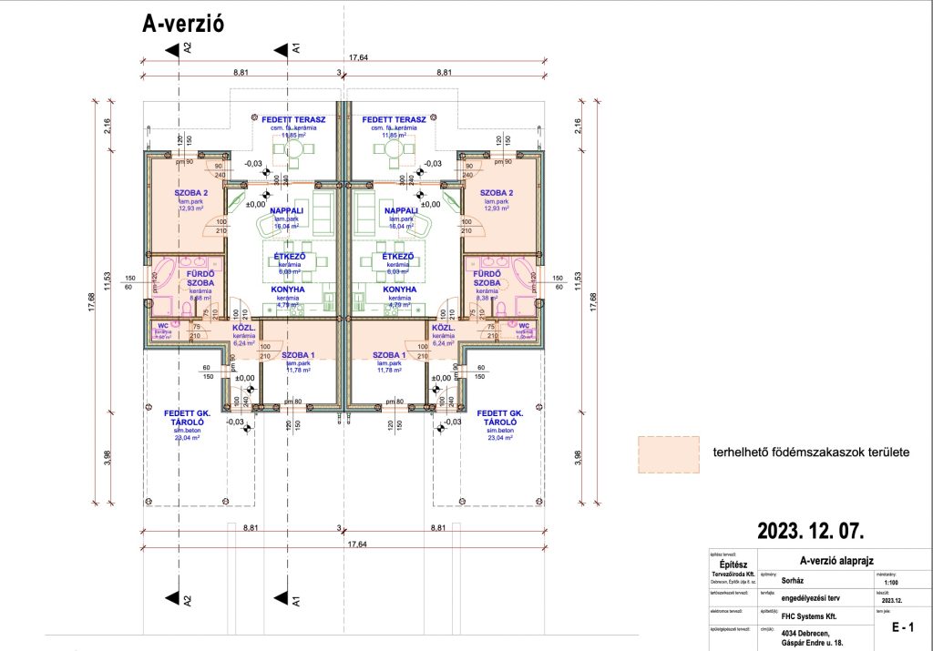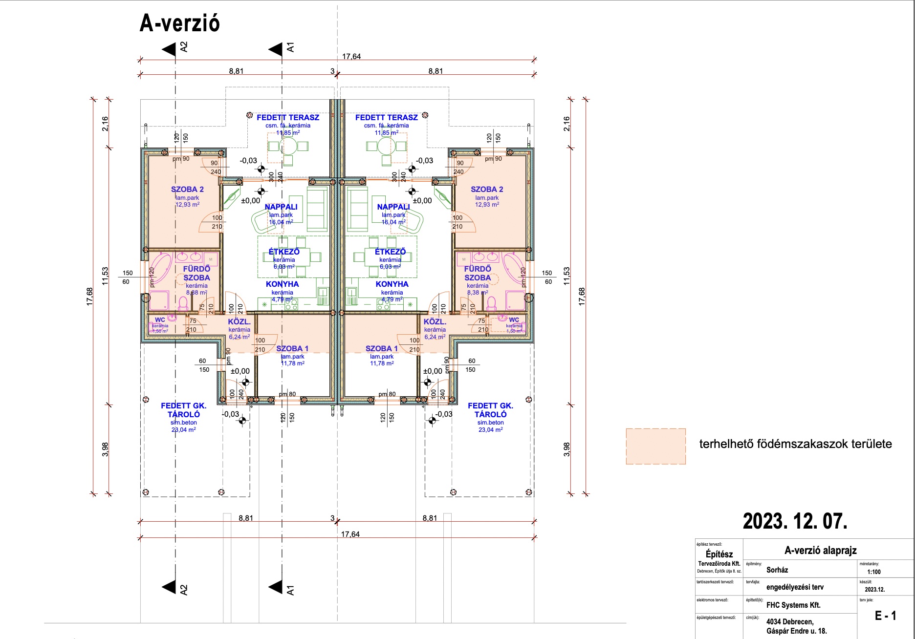 • 2 lakásos sorház (ikerház) A – B – C verzióban